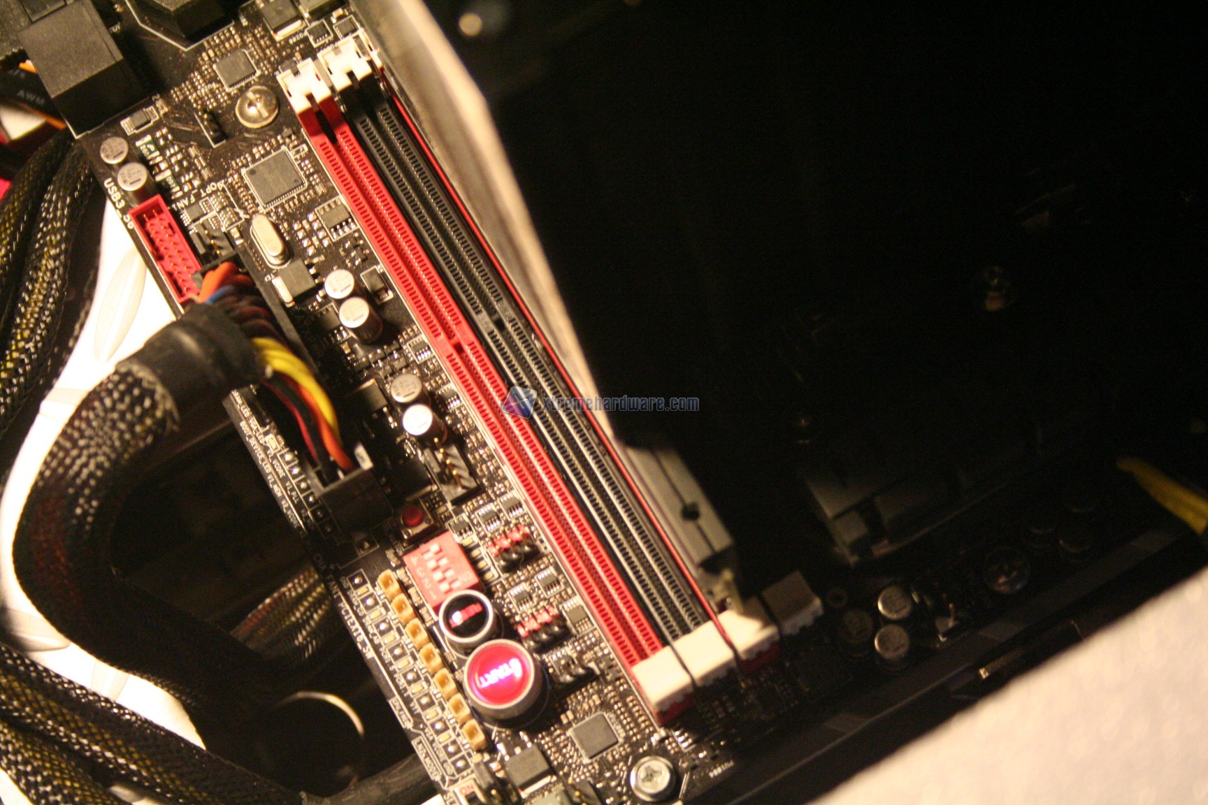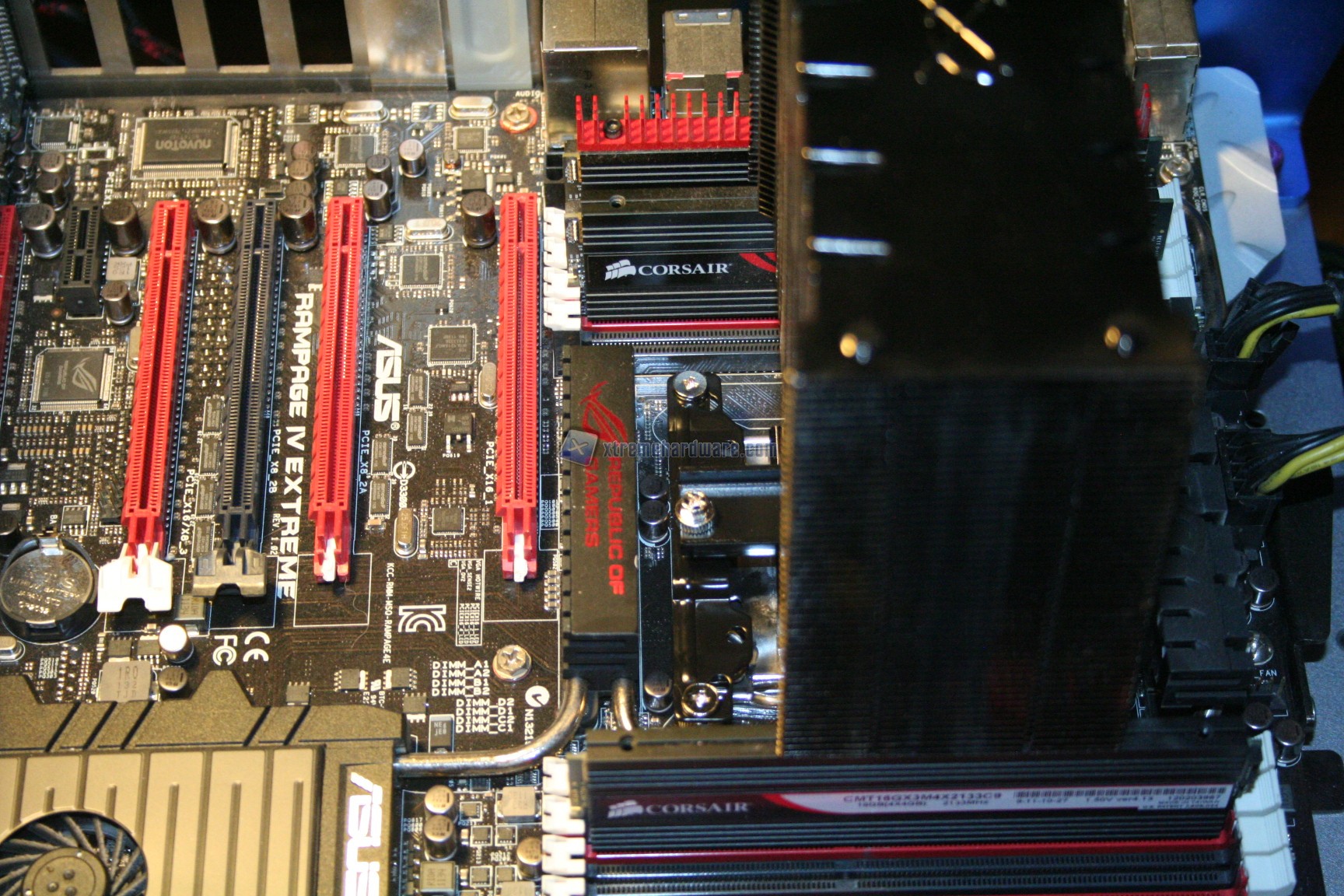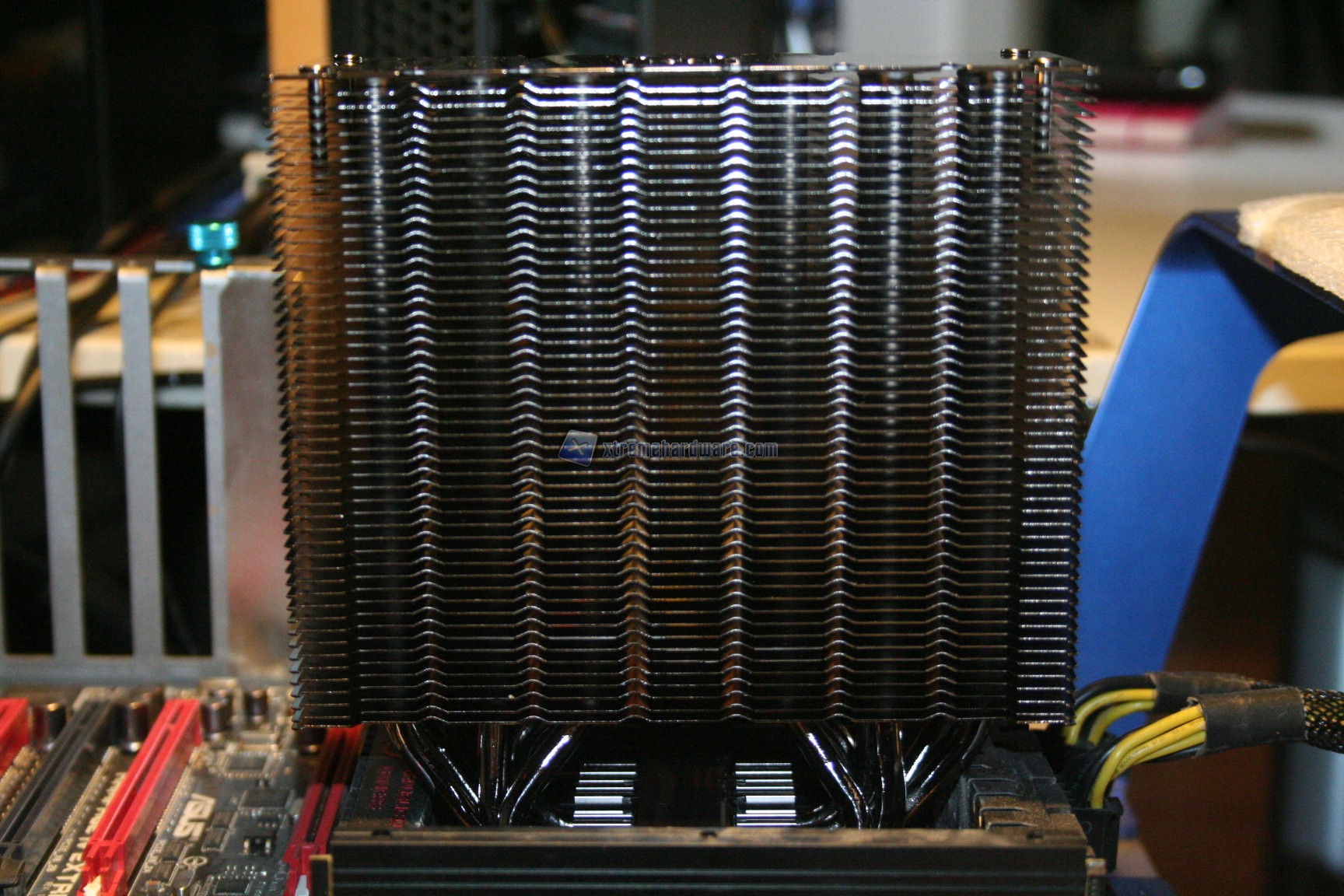 La compatibilità con RAM ad elevato profilo in linea teorica sarebbe ottima, se non fosse per un problema: la compatibilità con la Rampage IV Extreme. Dato che una coppia laterale di heatpipes collide con il dissipatore passivo della sottosezione VRM della motherboard, è stato necessario posizionare il dissipatore lateralmente, il che quindi comporta dei problemi con le RAM ad elevato profilo.
