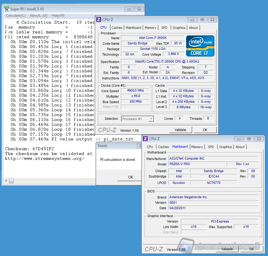 Siamo riusciti ad avviare il sistema con moltiplicatore impostato a 49x e con voltaggio a 1.465 V. Con il BUS lasciato a 100 MHz, la frequenza ottenuta è stata di 4,9 GHz; si tratta di un ottimo risultato. Le temperature ed i consumi della CPU si mantengono su valori non allarmanti nonostante la temperatura ambiente al di sopra della media stagionale . Abbiamo quindi effettuato un piccolo test utilizzando SuperPì 1M.